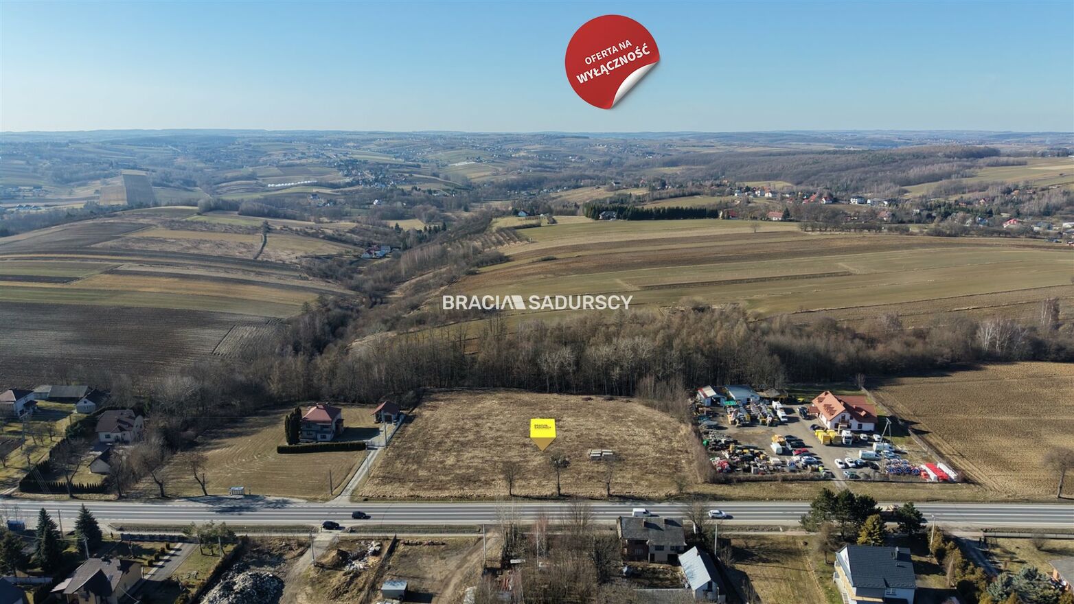 Ekspozycja: Działka przy ruchliwej trasie - idealna pod siedzibę firmy, salon, serwis lub bazę logistyczną.